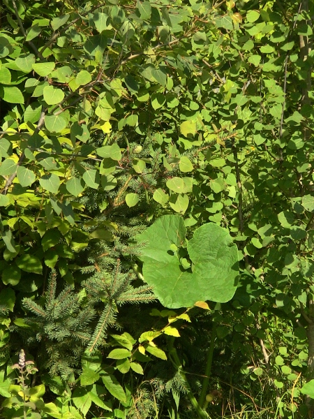 on the left side, it continues to grow into the ground cover and it also is climbing trees..