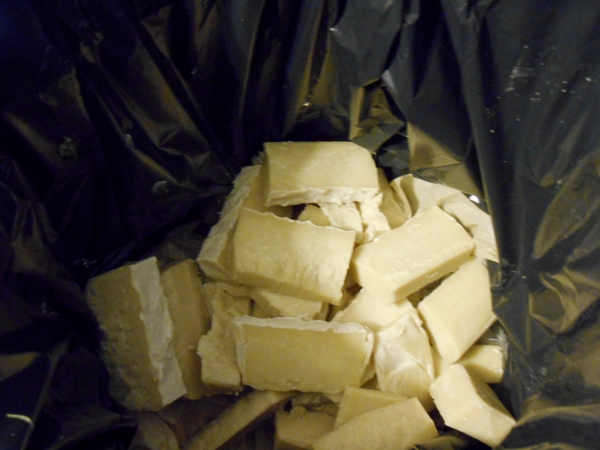 You see this soap.. it looks good right.. but nope, I used a new pot and while I thought I saved it, that was not the case, it was ruined.. this is where all that soap ended up.. it could not even be re-soaped or used for laundry soap or floor scrubbing soap because the dang soap reacted to the new bigger pot I used and it went funky-and that’s me being kind..