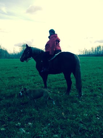 We rode the big field and then into the bush we went, First Sam was awesome, he picks his footing well, he picks up and though brush like a dream, he goes in mud and muck and just powers though the other side, he rides fair and does not try and run his rider into bush, and we did some pretty good down the hills and one good up the hill and he just was yes, I think I can, I think I can..