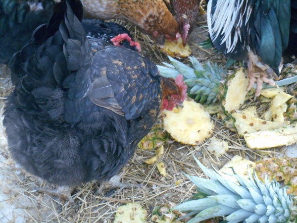 Some of the nails are done, some of the grooming is done, I also did some bathing and blowdrying! Some Pineapple is being done, the chickens are loving the trimmings