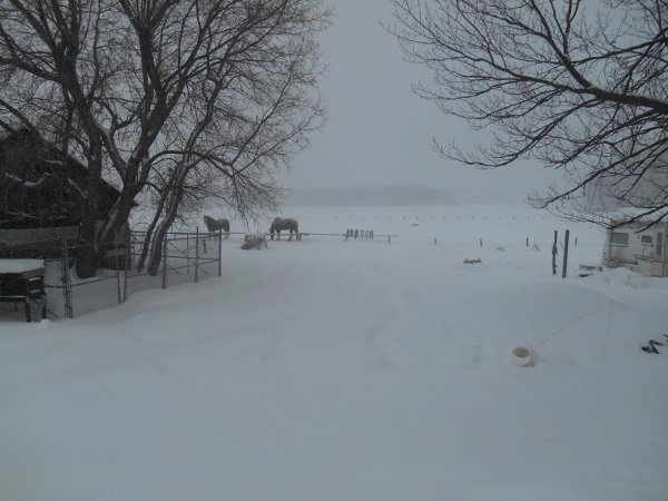 Used to be paths all over the place, but not anymore, the snow has filled them all in.. Why yes, you are right the horses are pretty in the snow..