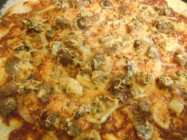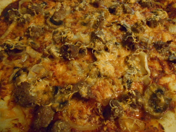 Homemade Pizza- Steak, Mushrooms and Onion.