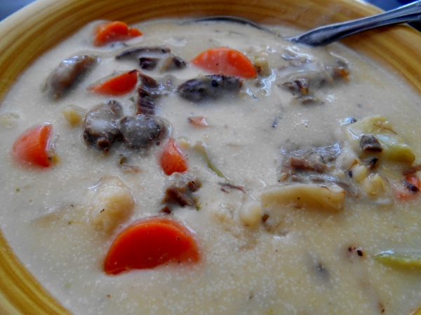 Lunch was the leftover stirfry, I put about two to three cups of light white broth into a pot, added in the leftover stirfry and then about a cup of whole milk, and heated it up till just simmering, then I thickened it with cornstarch.. and it was our lunch, yum..