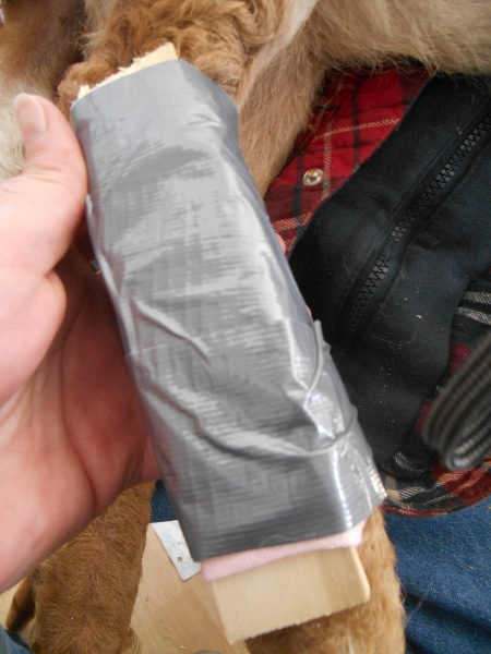 So we measured out his leg, took shims and cut the full end off to fit, it needed to be just past the one joint and for the next three days above the below joint.. I need room for possible swelling but I also need it to be stable.