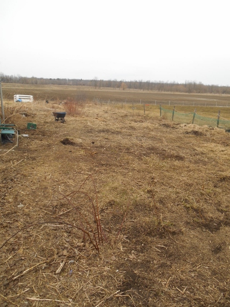 One row over is horseradish, walking onions, Wild Violets, mints and some strawberries.. One more row over and its all beebalms and strawberries.. The rest is all annual area, and will first be moved into pea’s, and then cropped out and planted out again.. anywhere that is not planted out will be seeded out with barley or oats as a green crop..