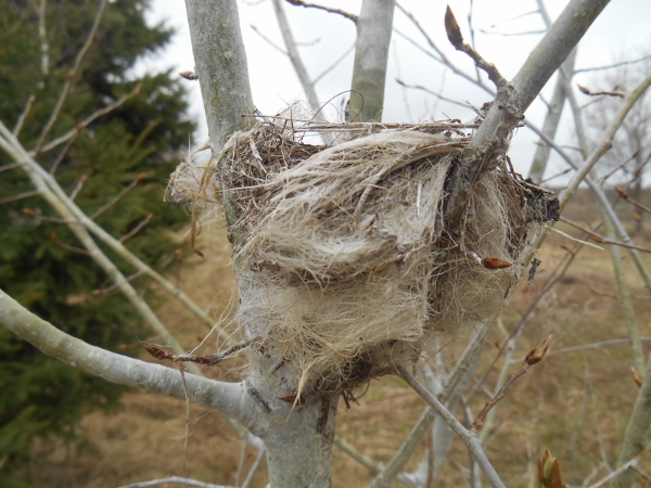 Found this cute mostly shed sheeps wool birds nest in one of the tree’s today, is really quite small, just looks big in the photo, in a very unprotected spot but its cute..
