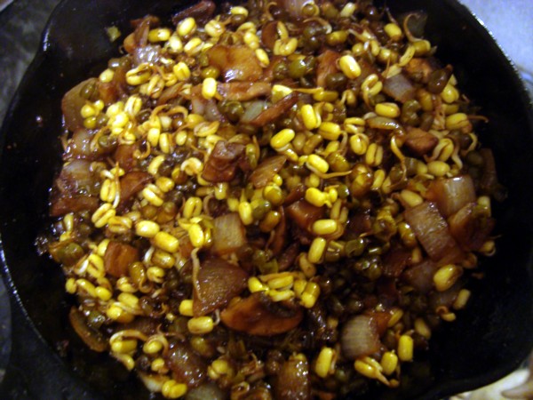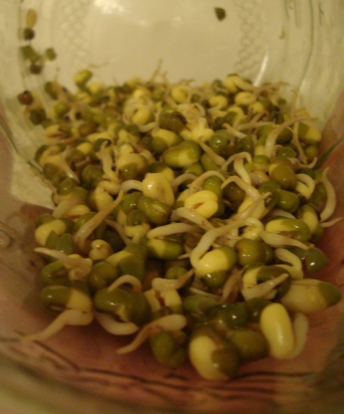Dried Mung Beans can be turned into wonderful home grown sprouts for use in a number of tasty dishes, I started sprouting about ten years ago as a way to be able to offer the hounds fresh ground greens once or twice a week in their diets thoughout the winter and slowly have started using them for both the hounds and the humans of the house.