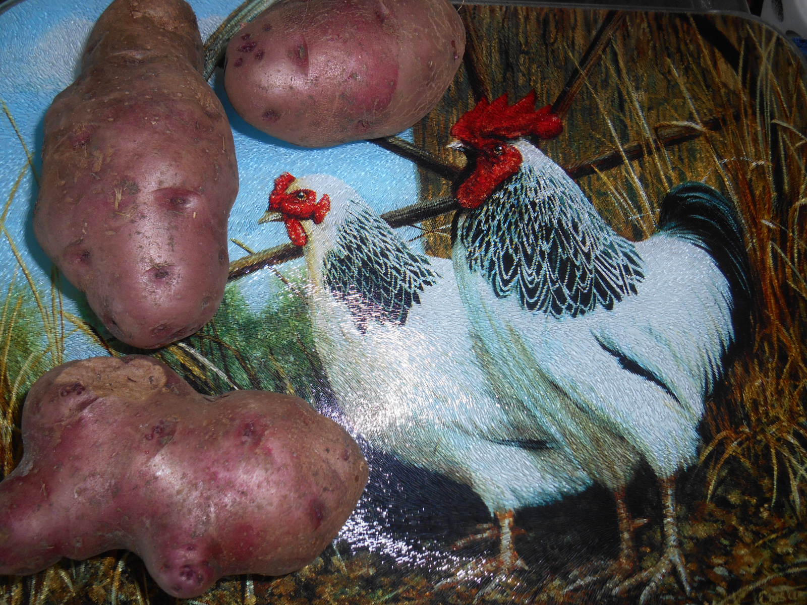 some of our homegrown spuds, despite the nick, they are holding very well. my all reds are more like all pinks and while they are firm, the flesh is softer and a touch sweeter then normal store spuds.