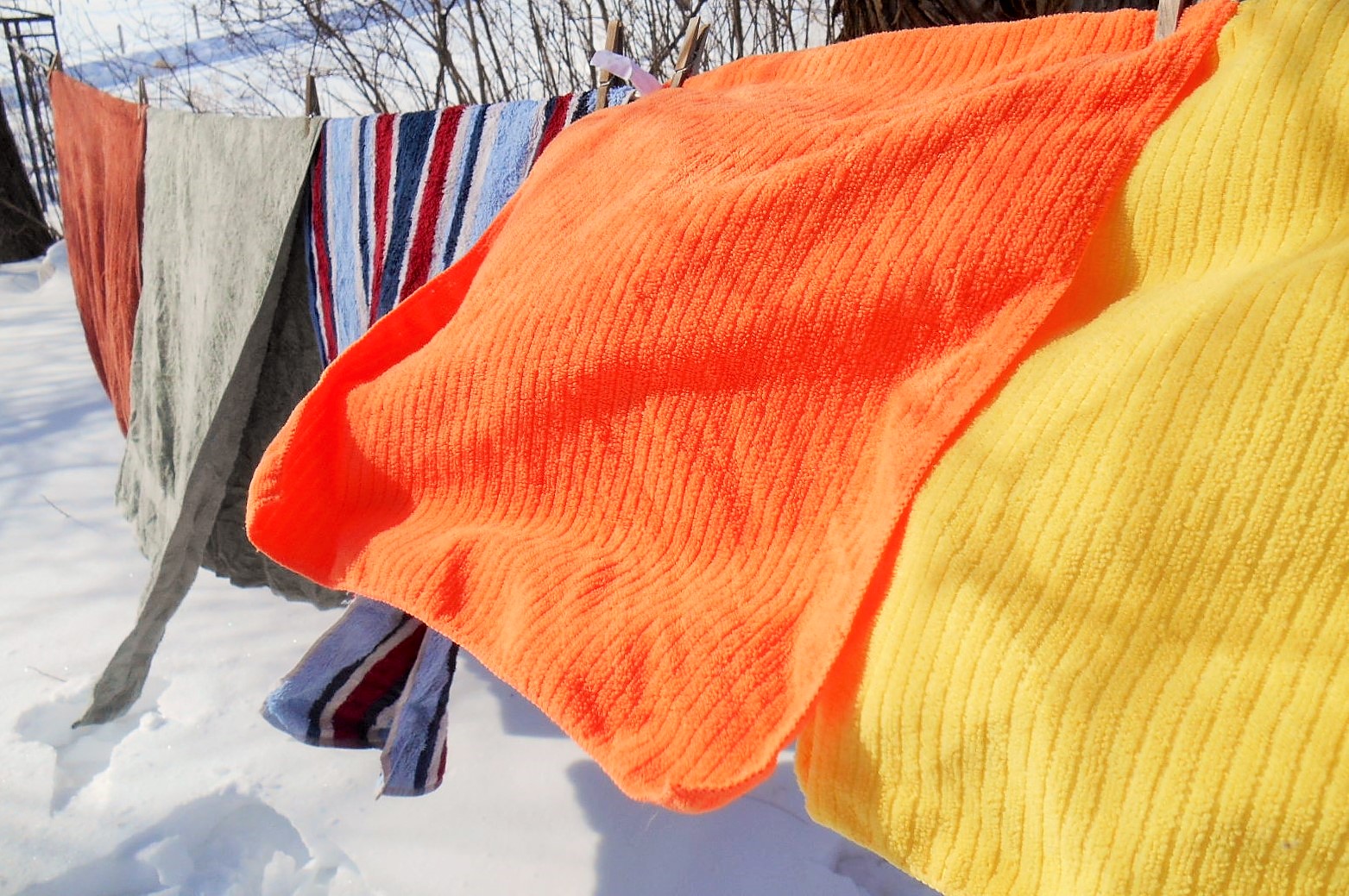 I tried to get this photo before they froze solid in odd ways, but it was not meant to be.. Its bright and sunny but its still finger numbing cold out there today.. or in this case, towel freezing in place before you can get them all up and snap a photo..