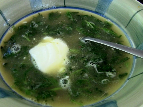I promised that I would also show a cooked, so I took half the plate, ran a knife over them a bit cutting the biggest leaves, put a bit of butter in the bottom of a pan, threw the nettles in and let them cook till dark dark green and well wilted, if you cook mustard greens or big older spinach leaves, you want a full wilt on these greens.. then I added in a cup of lovely pork bone broth, simmered till hot, added a tsp of sour cream and that was a light wonderful tasty soup! If you needed it to be more filling, bread on the side would do the trick as it was I had it for breakfast that day.