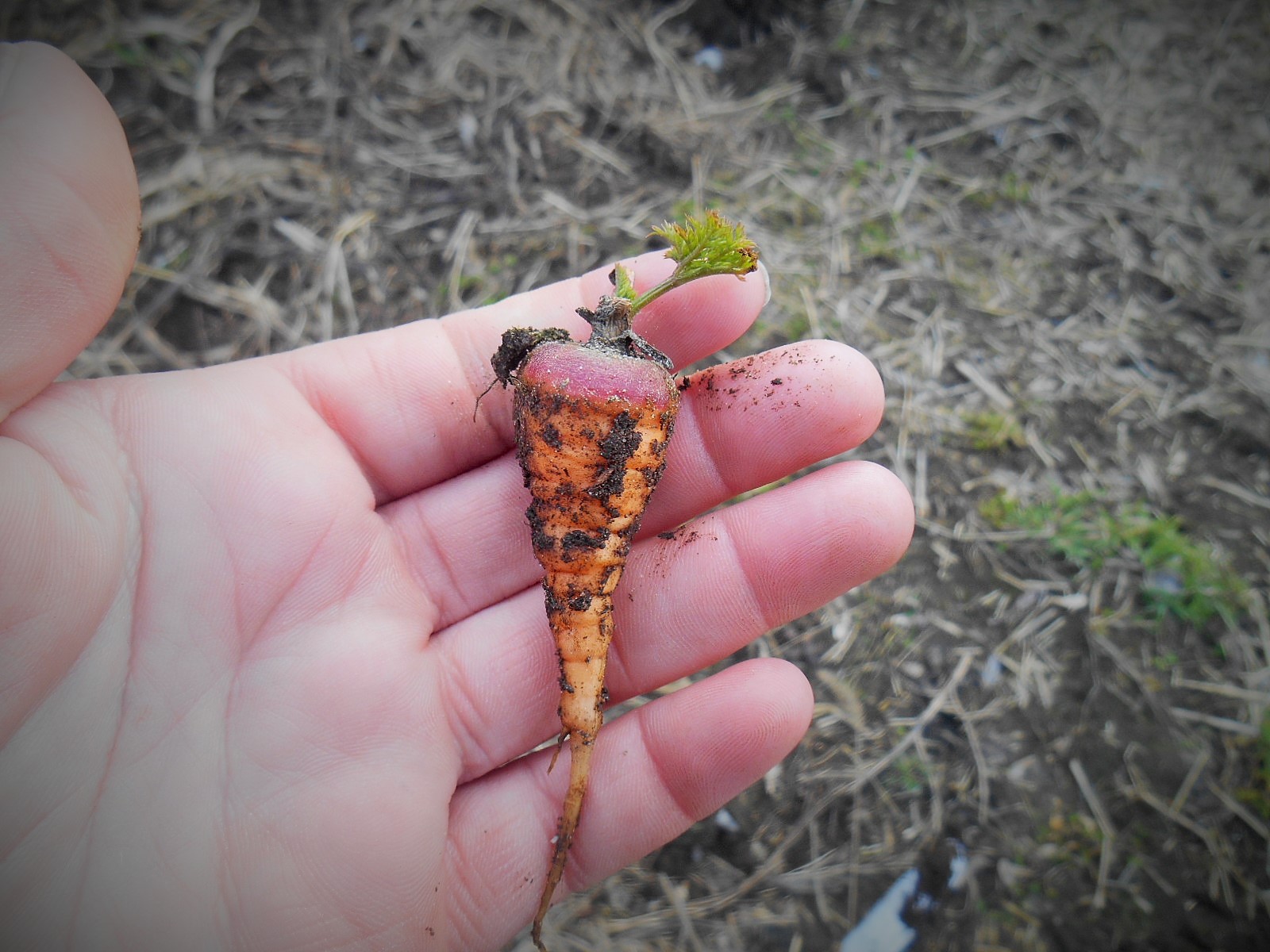Very Happy to see that despite our brutal winter, that I was successful at overwintering carrots, some will be used for seed saving, but most will be eaten as a sweet spring delight.