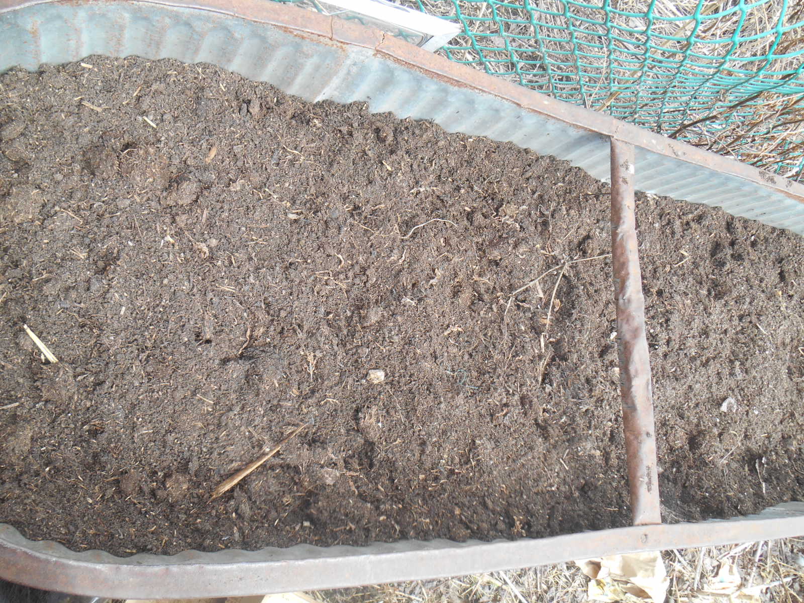 It started out as a manure hotbed, and over the past three years has composted its way down over two feet!, so it needed to be cleaned out, weeded, turned, a light sprinkle of hard wood ash added and a full wheel barrel plus load of two year old well turned and composted Pig-cow poo.. So far, its just planted out into green onions and radish at the moment, but this weekend I will add more 🙂