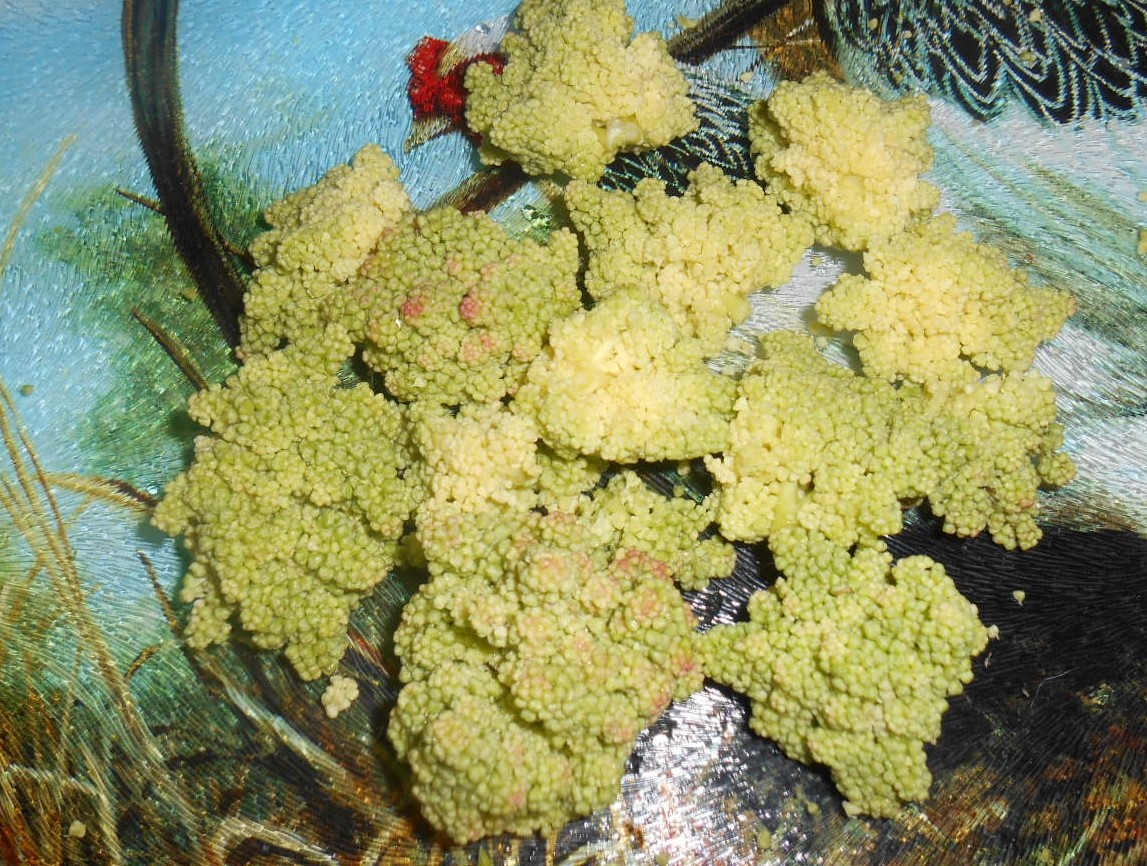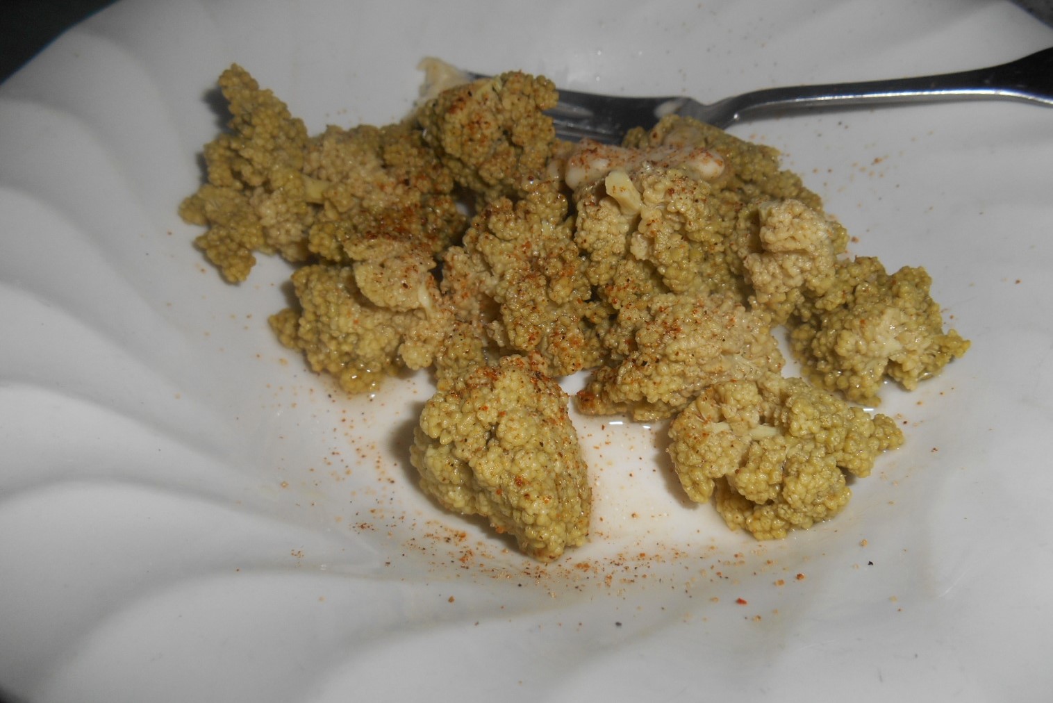 I wanted to start as simple as possible, treated like cauliflower, I brought a pot of water to boil, added and timed for 4 min, I will be playing with steaming, stirfry, pickling and I want to see if you can freeze and then use, drained, pat of butter and seasoning salt. It was soft on the outside, firmer on the inside, slightly tart-sweet-sour, like if you had put a bit of lemon juice on it, otherwise it was yummy but it was itself in taste. I will be eating it again for sure!