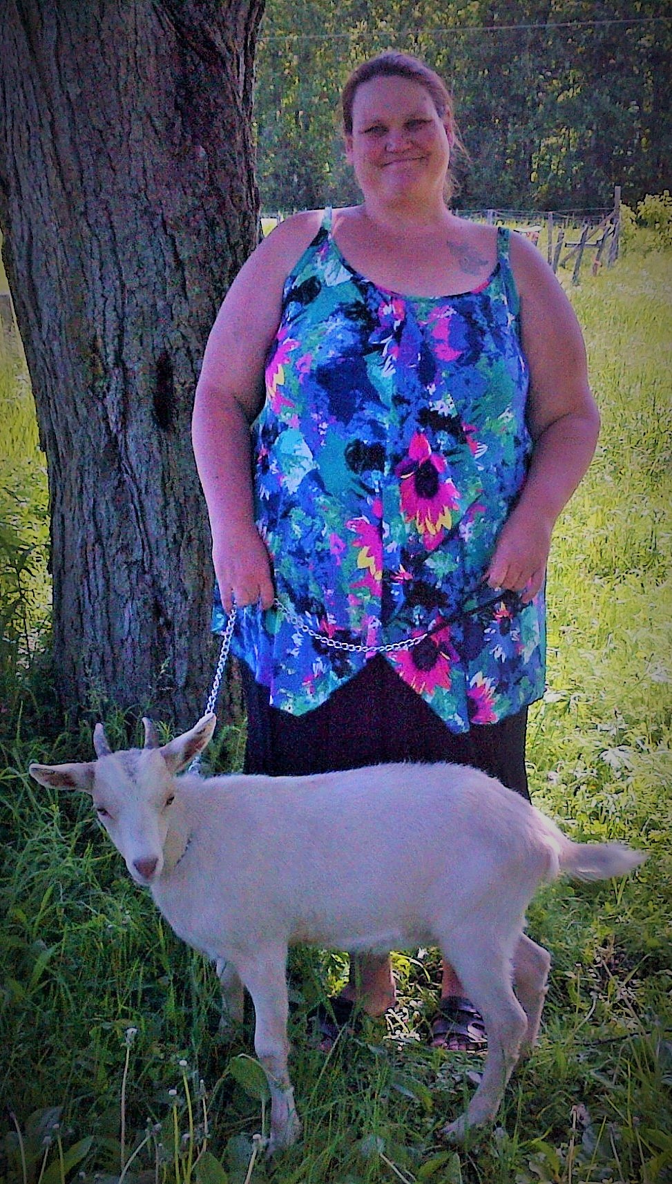 Very pretty. What breed is she? We brought home our new Kiko buckling and doeling in a dog cage also.
