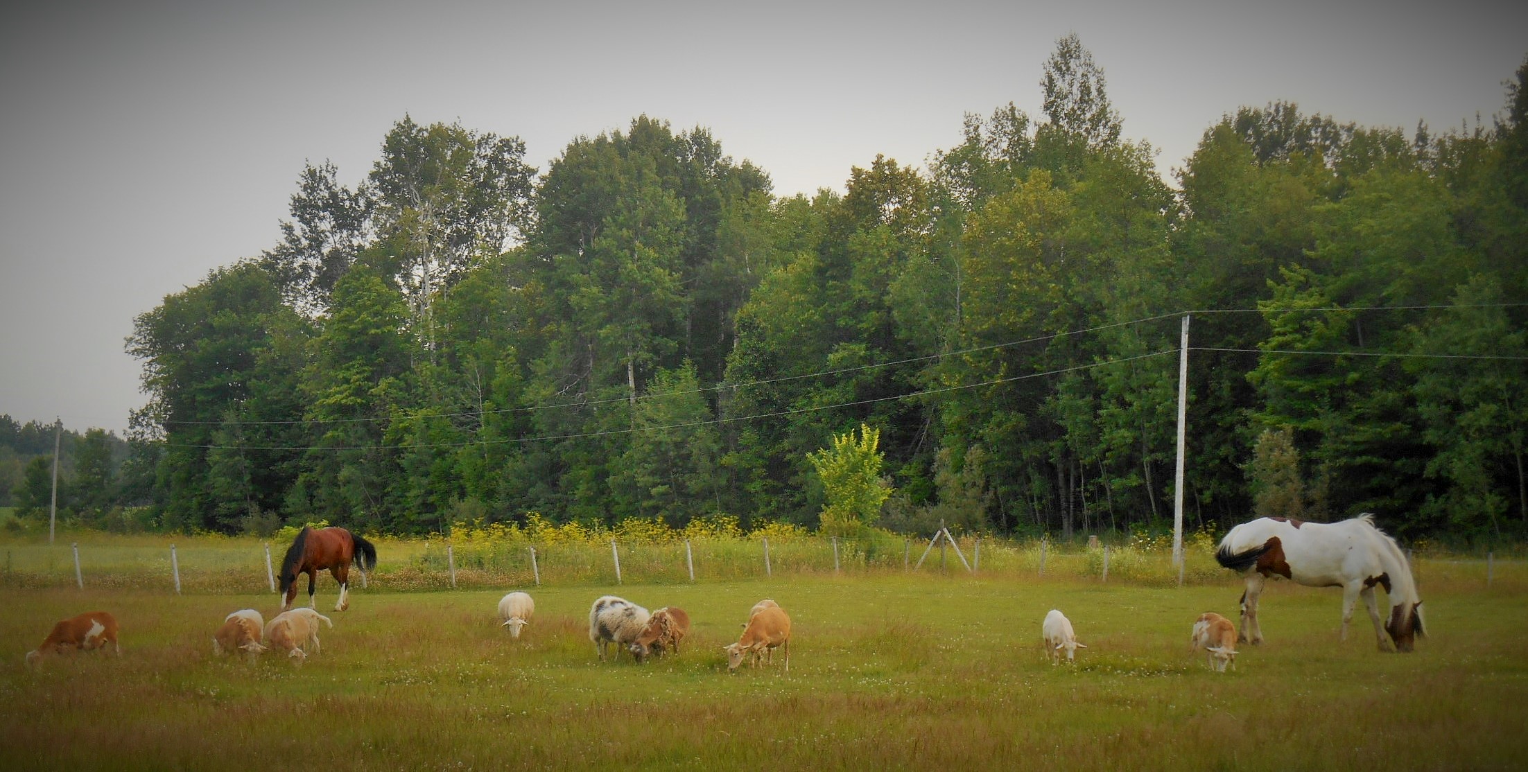 The pasture is doing great, we have at least half the pasture is high enough that above sheep belly height, we also let the grasses go to seed to help fight the clover, and now we have released the adults from the dry lot, we will feed out a small amount of fresh this years first hay cut in the back barn, as the horses like to have a bit of hay to munch when the horse flies are bad and it helps greatly for them to hide.