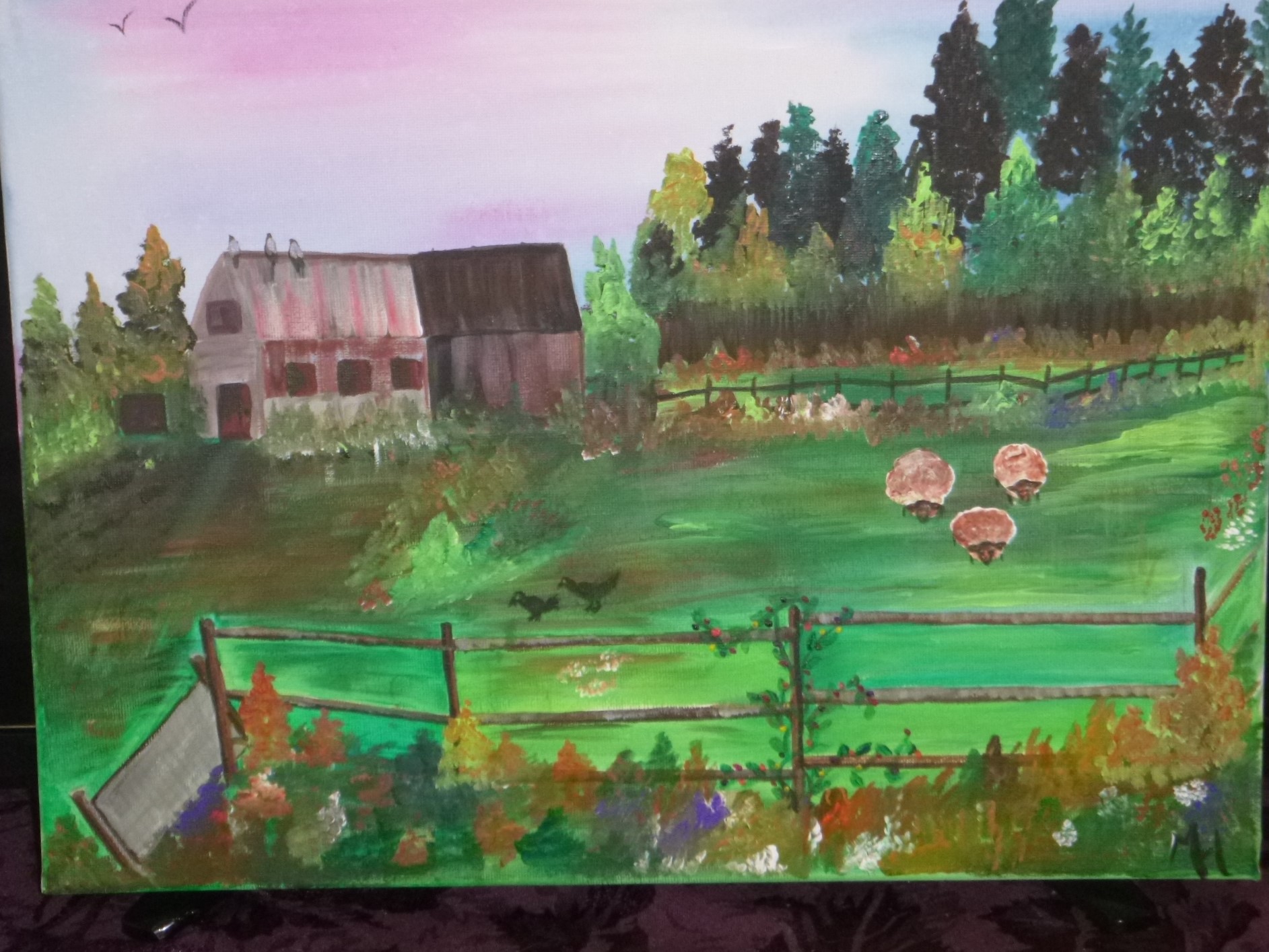 > Just another day on the farm posted: “Mom did a pretty painting for me of > my pasture, barn an such.. but still needs to do a touch up on the sheep > yet”