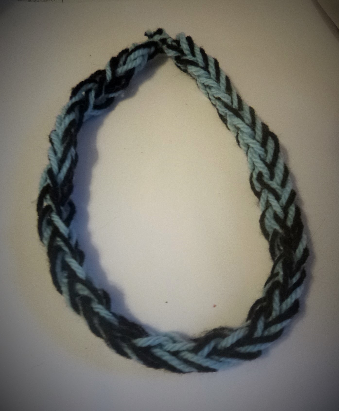 But if you buy some wool in the discount bin, at the second hand store or at a farm sale, you can make soft but really strong Viking cord for mear pennies each
