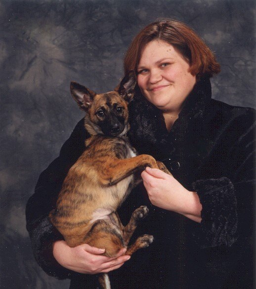 Here she was a sweet young pup.. She is a mixed breed Shelter adoption, we had a idea of what her mother looked like as she was turned in expecting but no idea at all on who her daddy was.. She was such a itty bitty pup when we got her and she certainly grew to be bigger then expected.