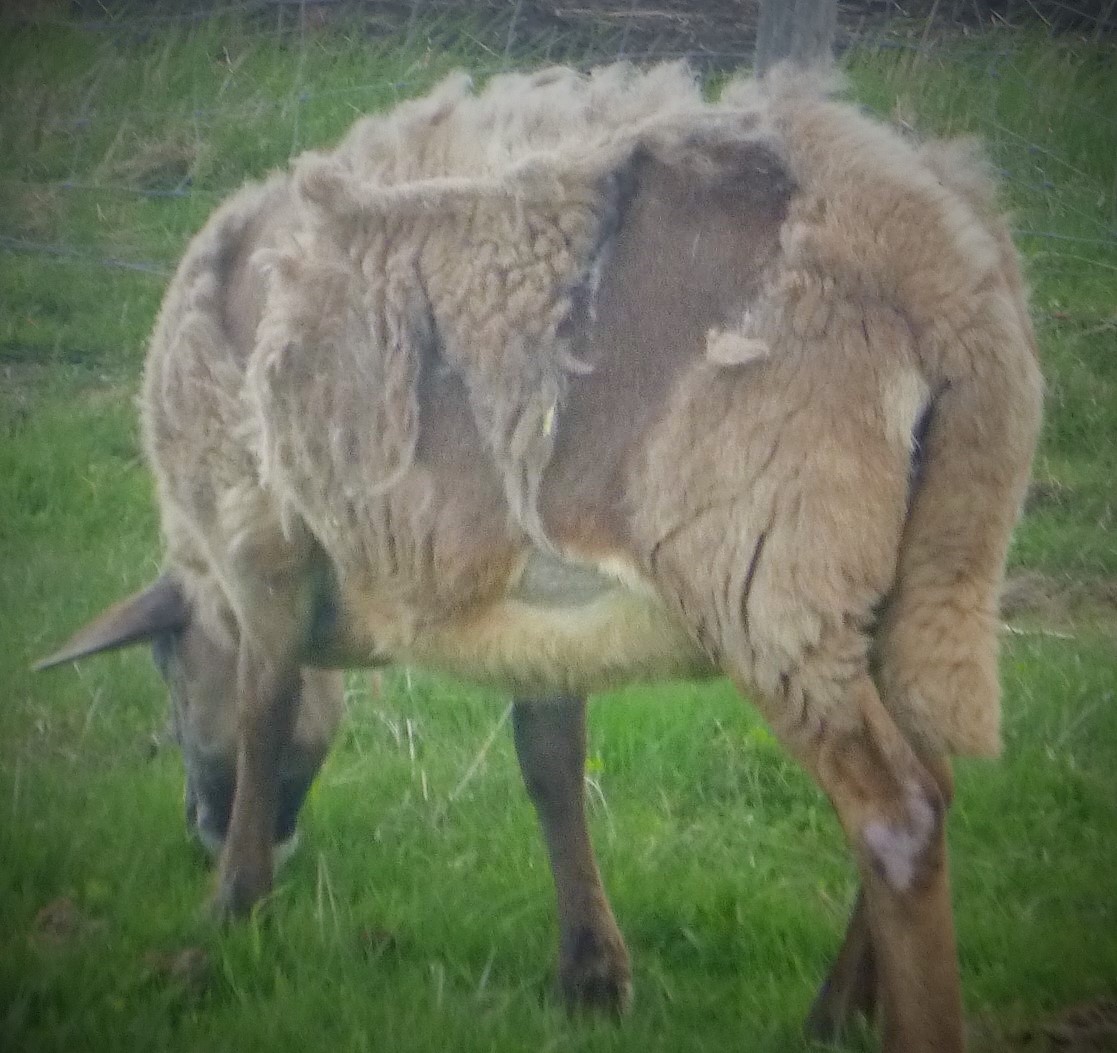 I love seeing my shaggy hair sheep shedding out their wool, I like it even more when they shed and they have good body condition under that wool.. over the next two or three weeks, she will shed out all her winter coat and a sleek summer hair coat will be her summer dress 🙂