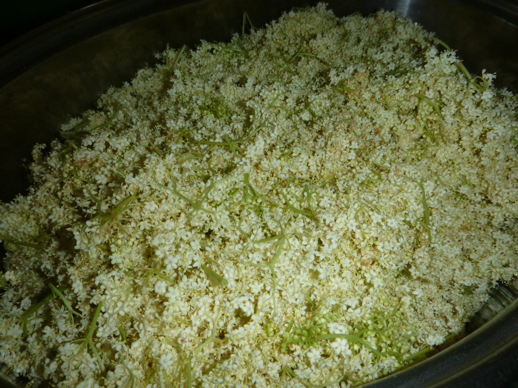 Many jars of died Elderflowers are done, I have canned up jars of elderflower syrup and I am waiting for the gooseberries to come ready so I can make a gooseberry-elderflower jelly this year as we know that the flavour combo is outstanding per the pie!