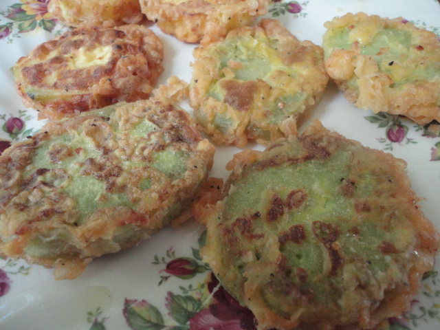 Fried Green tomato’s.. washed, sliced thick, dipped, breaded an fried till golden.. so easy, so yum!