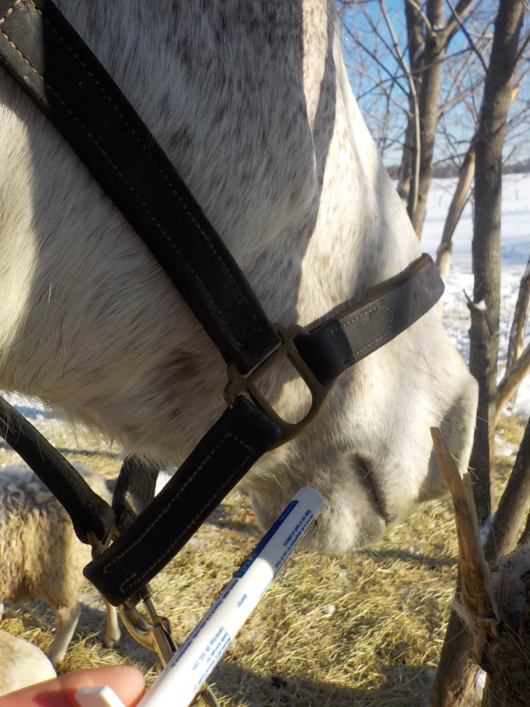 Since arriving on the farm, Bo has been wormed and he took it like a very good boy, excellent manners on this..