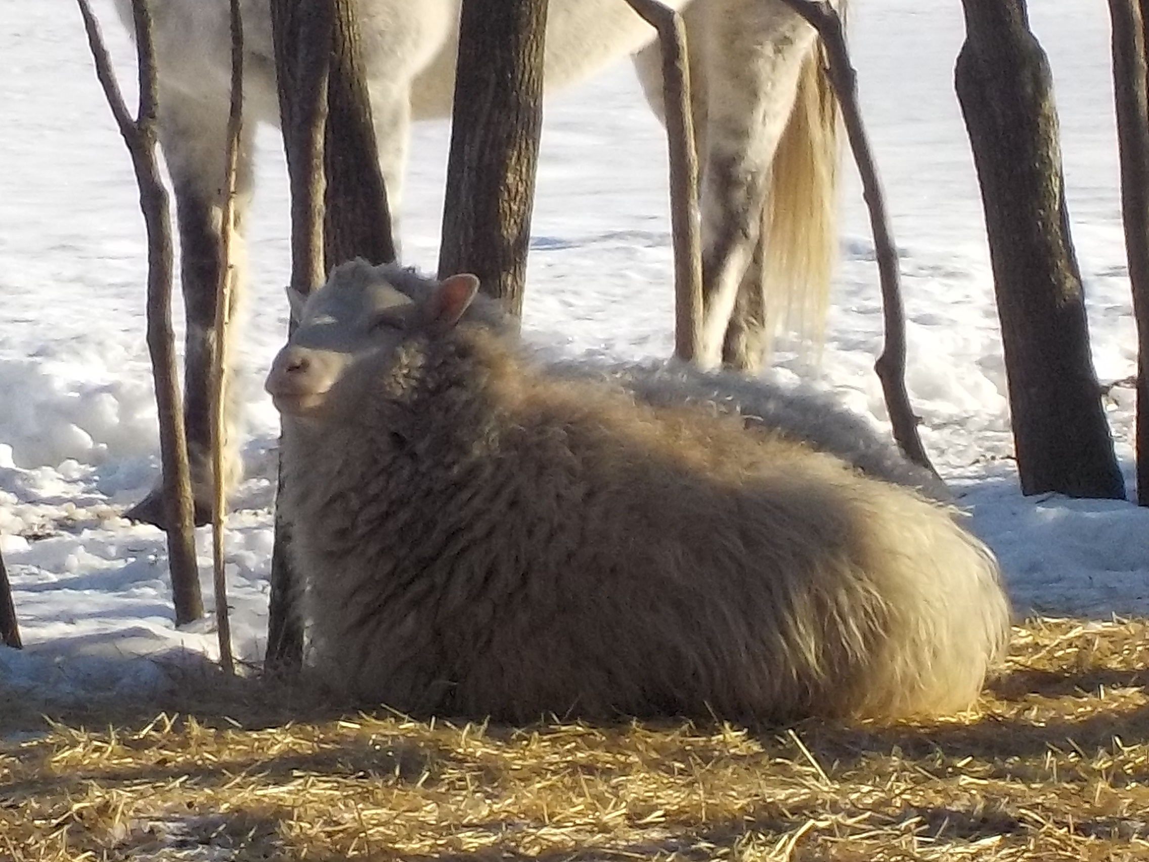 She was added to the flock (we have traded enough stock back and forth, that at this point, if we didn’t have something the same at some point, we do now) and she was calm, steady and sweet.. she was just home! When I went to check on her she was napping and did not care that I walked up and chatted to get a photo..