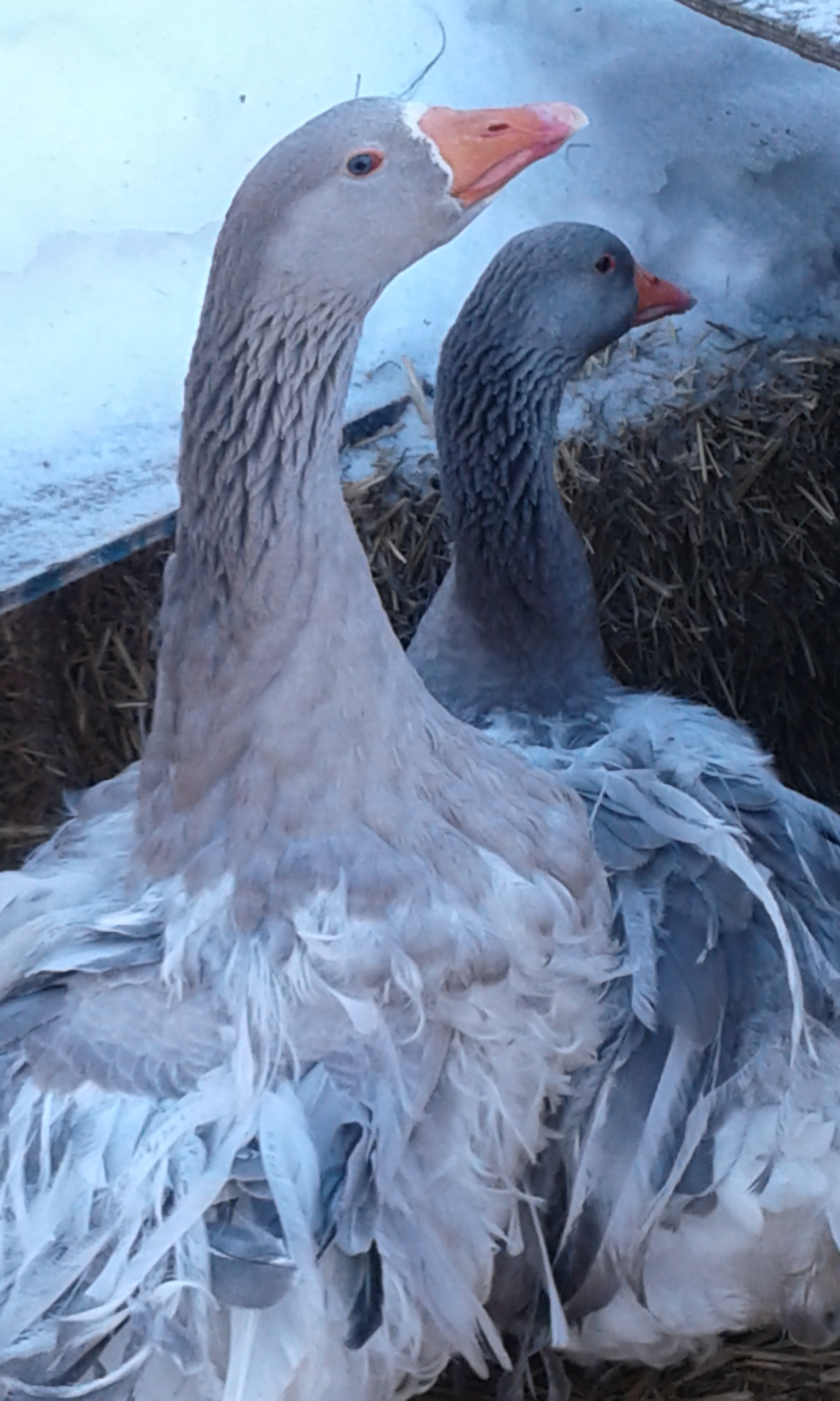 Now these boys, they are tough.. they are the guard geese and they even make the horses back up.. nothing funnier then watching caleb yield his feet to the goose coming at him.. they are about double the size and weight of the breeding geese, they don’t use the barn much and they are out in the open pastures, where as the breeding geese are safely tucked into a pen..   Maybe this year I will get some new females from the breeding geese and give each of these boys a new goose to bond and mate with, I am sure they would make excellent fathers..  well I am sure Honk would.. I am not as sure of Pom, he is already over the top at times in spring.. I might have to put him and his lady up till babies come so that he does not feel the need to defend quite so much..