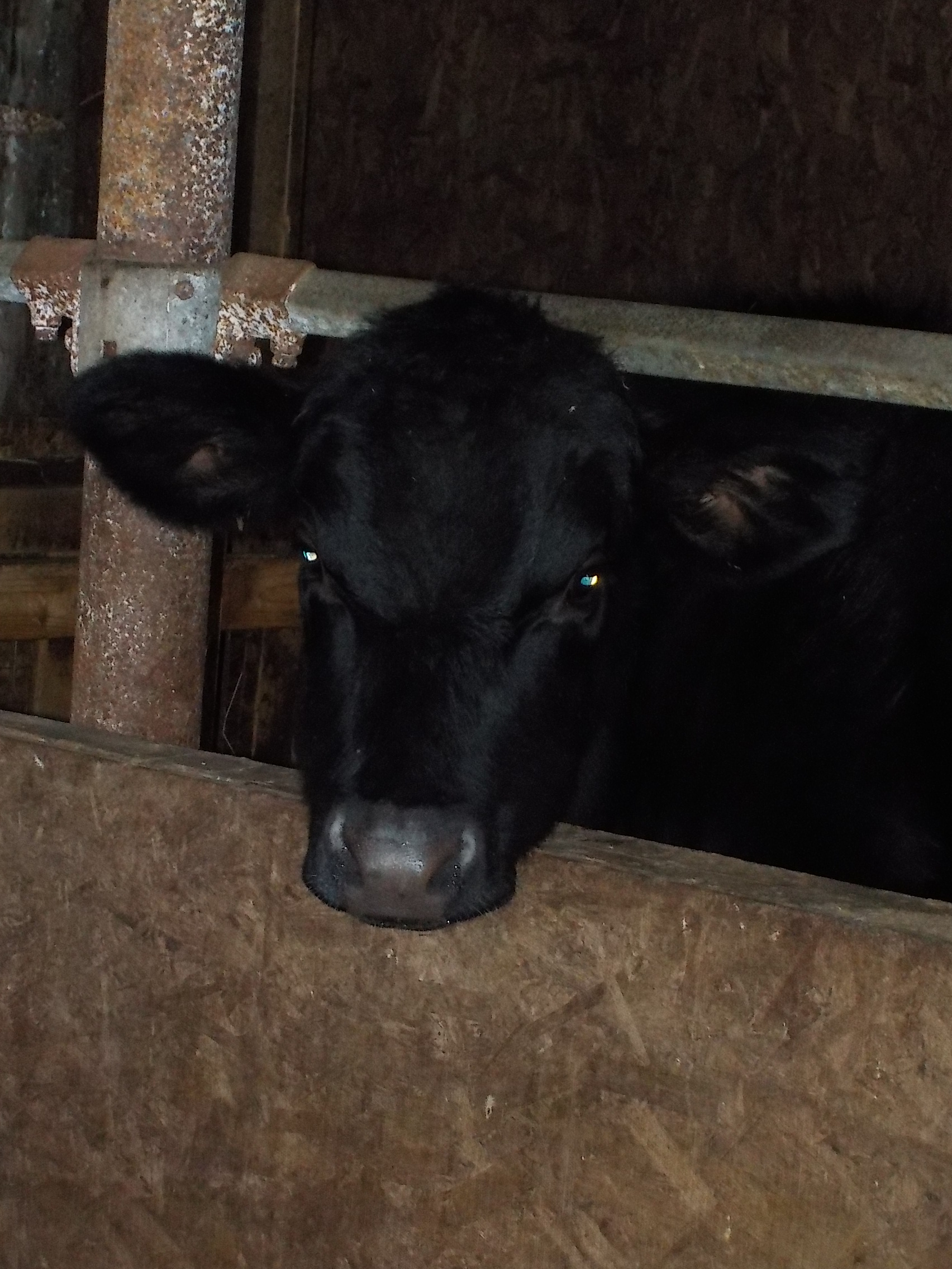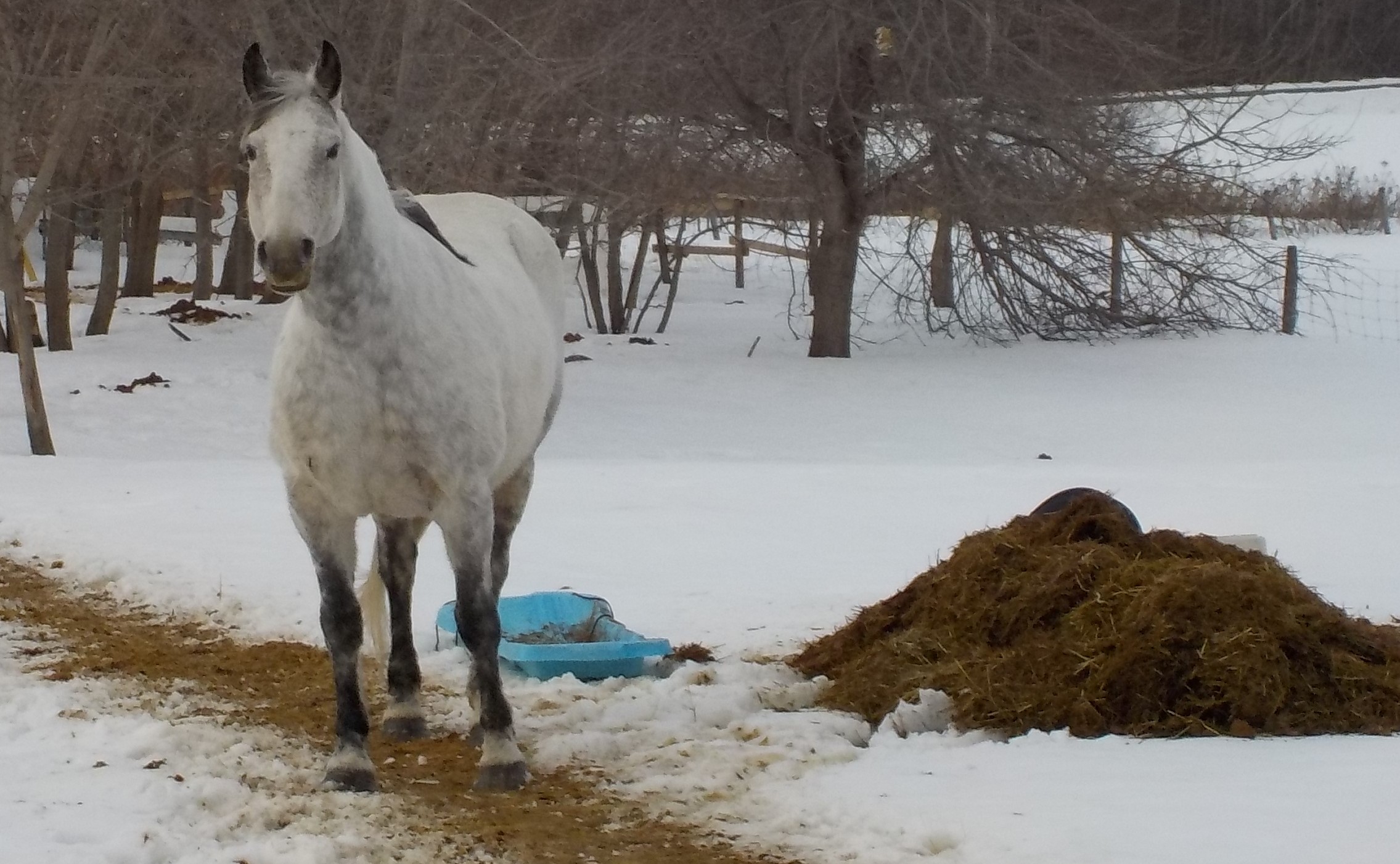 The first thing that greets me is Bullwinkle.. as the hot line is off for the winter due to the heavy snow load, he decided that he could just hop, skip and jump the fence and meet me in the yard.. this will not do, so while he does get to have outside time in the corral, he has a big stall, its an nice loose stall but he is getting big enough now that he does wear a Cow Collar and when we do work in his stall, we call him over to his spot and he is clipped on the chain and he stands while we work around him and then we release him again once we are out.. (I learned my lesson well with Girl)