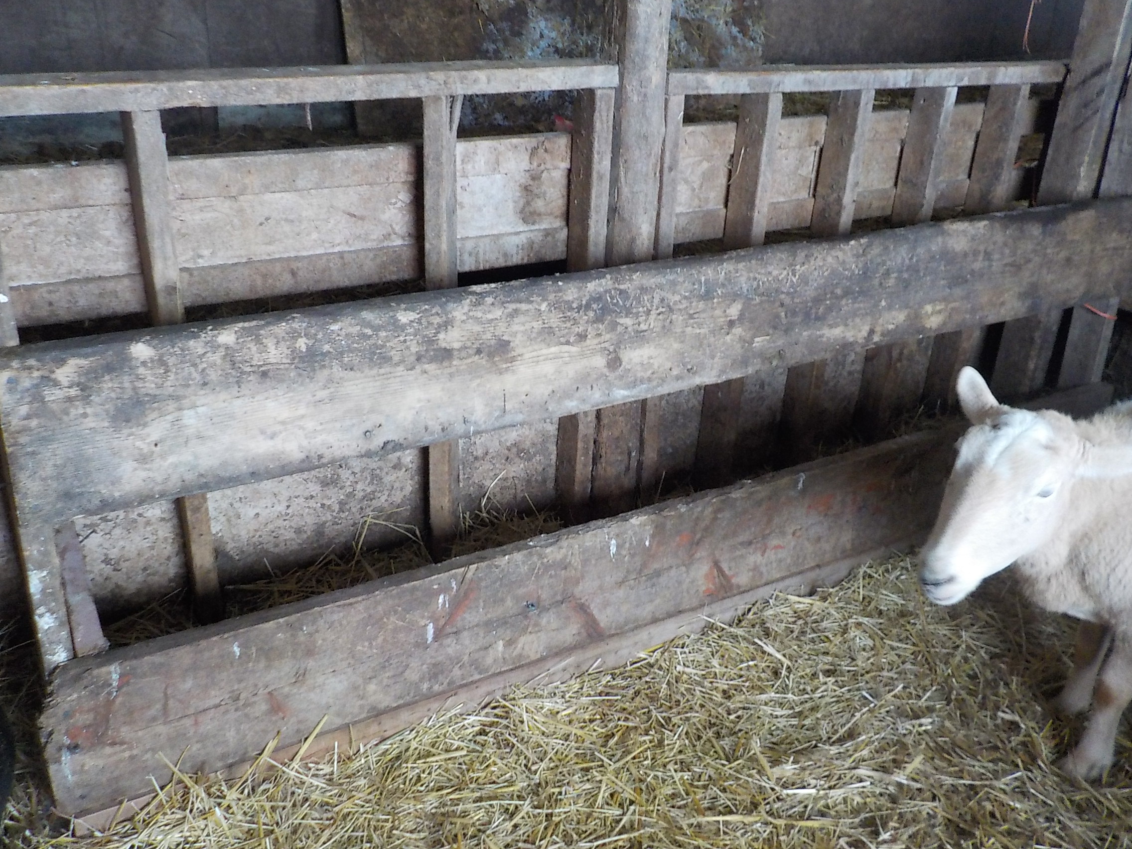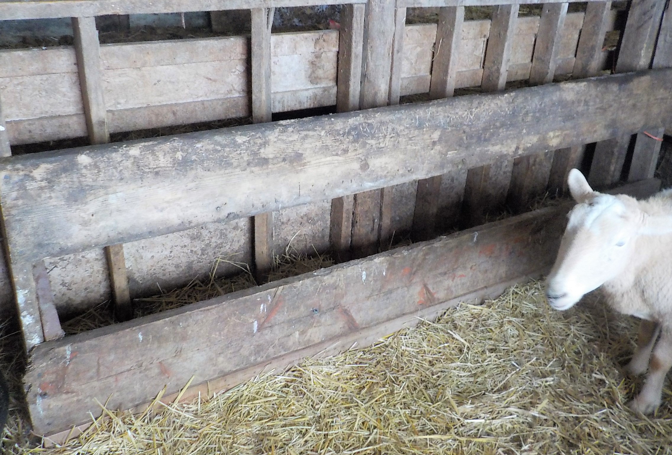 This pen normally has hay net feeder and or a single corner hay feeder.. neither of which worked for the ewe sheep that are using my big back corner stall as the nursery pen at the count down to lambing..