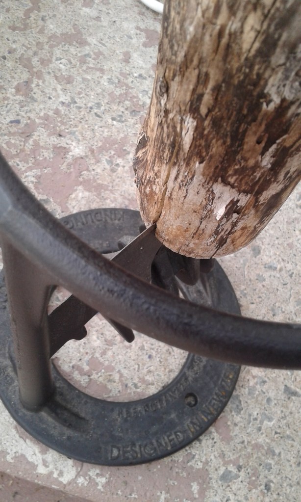 The Kindle Cracker helps me take a single 12 to 16 inch log 4 to 6 inch in size and turning it into 8 pieces of kindling that are perfect for the ecozoom stove.  That is enough wood to easily cook a full meal on the stove..  and that is just awesome!