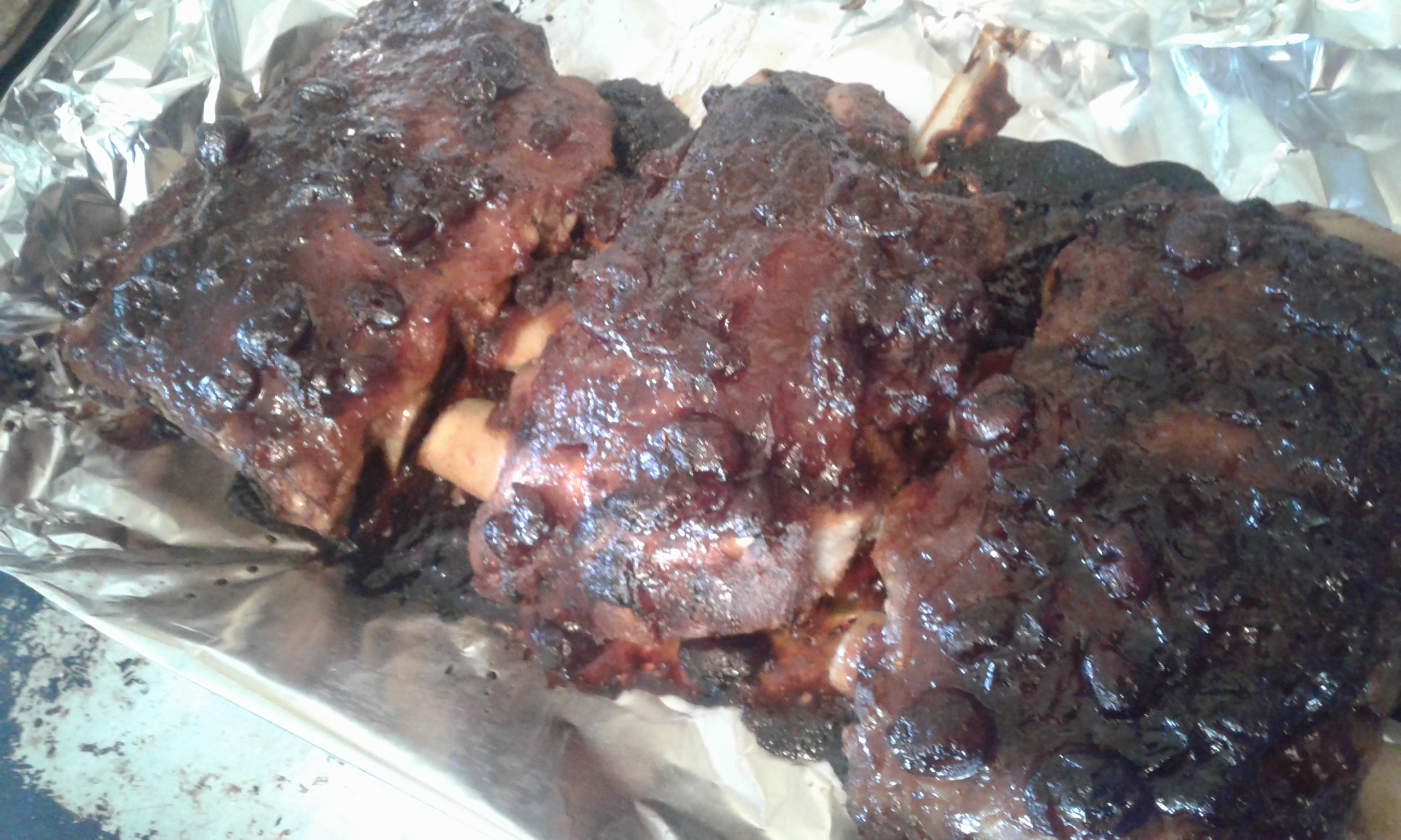 That’s it.. its so simple but o its good~ Mix it all together and spread it over the pre-cooked ribs, they need to be very slow roasted in my case I did with in the oven with water, onion and garlic with a bay leaf to add flavour to the pot and with enough moisture that they never got the chance to dry out at all.