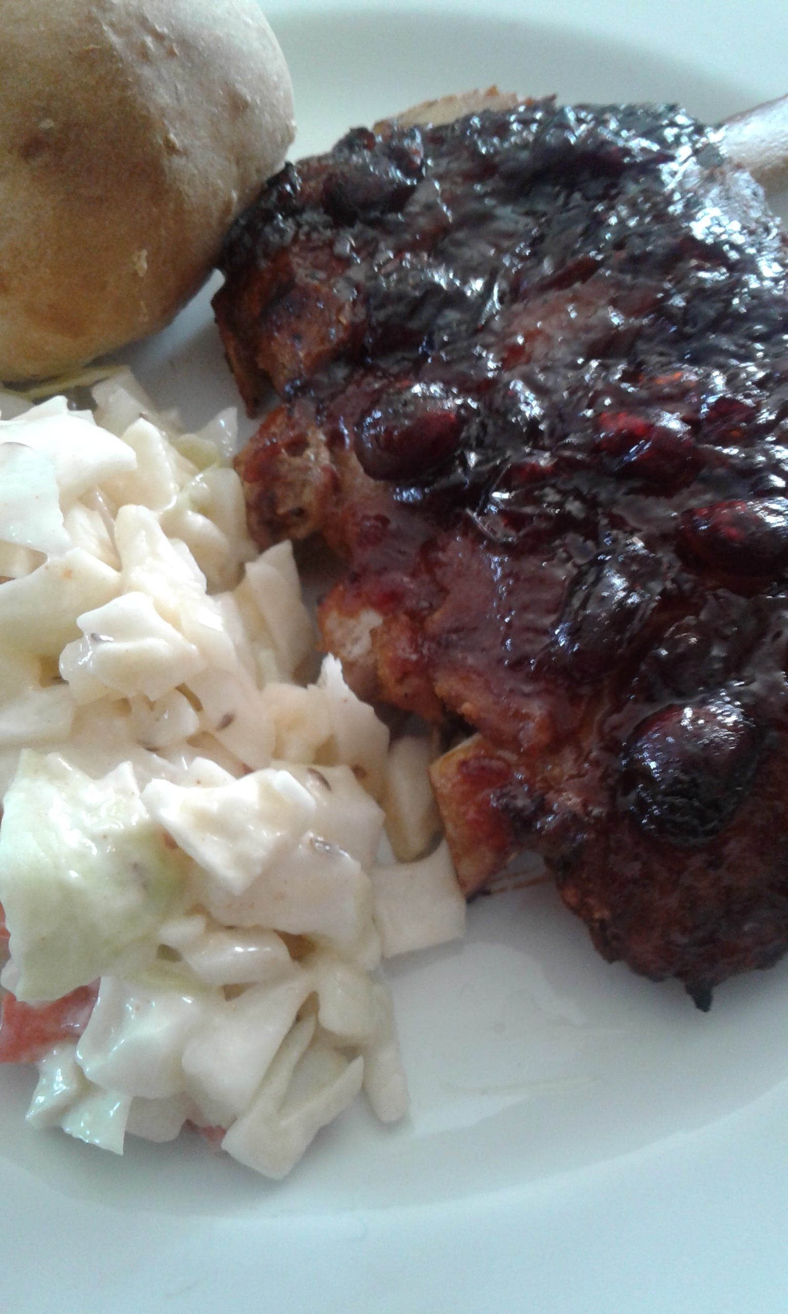 Into the oven on their foil bed, oven or BBQ at 350 till they are baked on with sticky goodness! I served these with a fresh bun and coleslaw. A lovely Sunday Feast indeed!