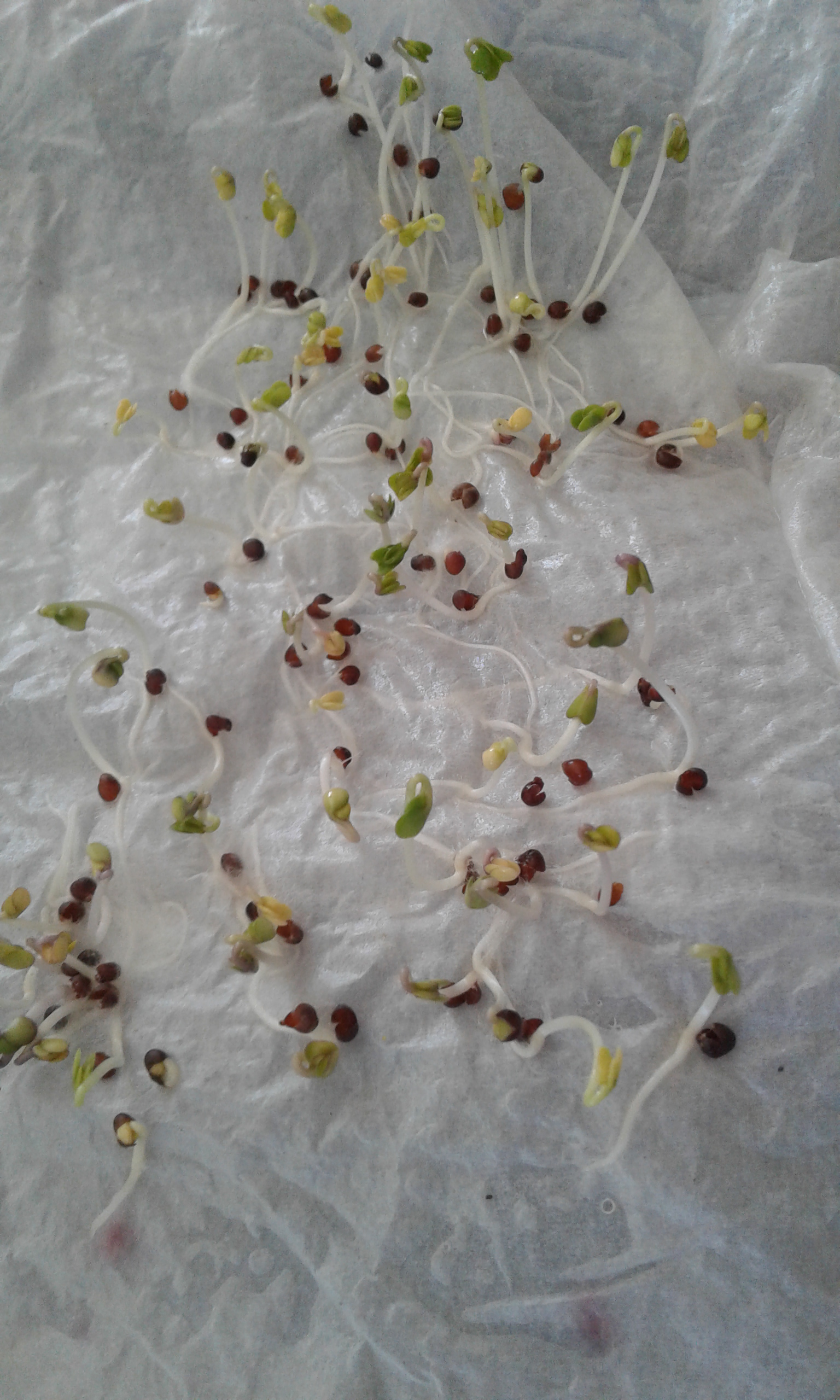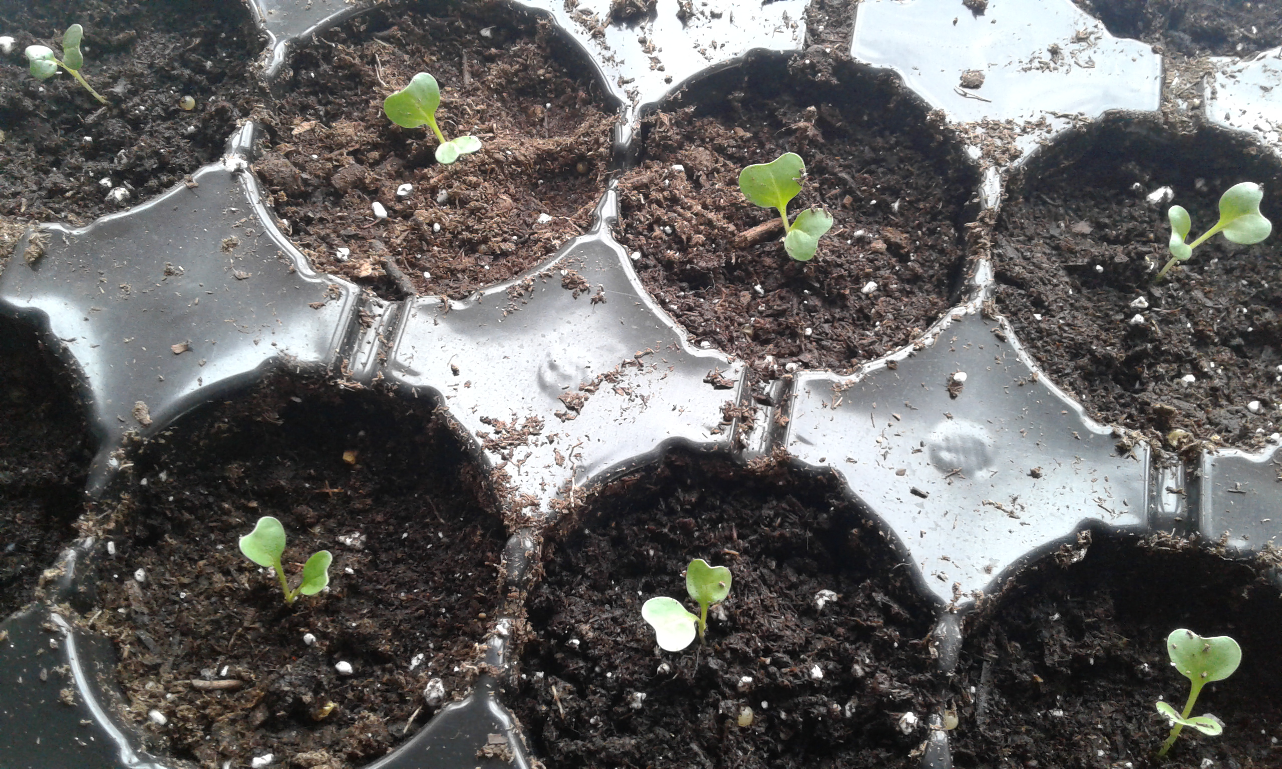A mear 24 hours after being planted.. they are up and looking fab! They are now set up with a greenhouse topper, under the grow lights, once they get big enough that they move from the starter shelf to the grow shelves they will remove the top. In total I planted out 30 strong seedlings, and feed 11 of the didn’t make it to the chickens bucket.