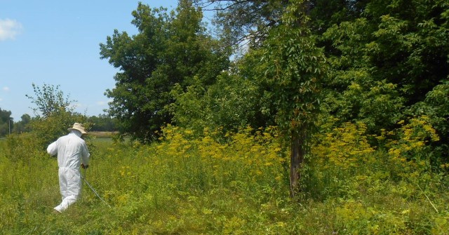 The second one is the fact that we have a wilder area on the farm, its typically a low -no mow area, its a no-till area and its a lot harder to control the parsnip out there.. we keep taking out plants each year but we always miss some here and there..