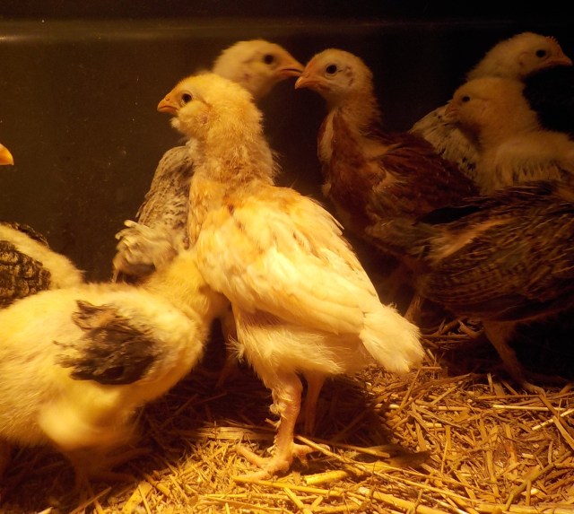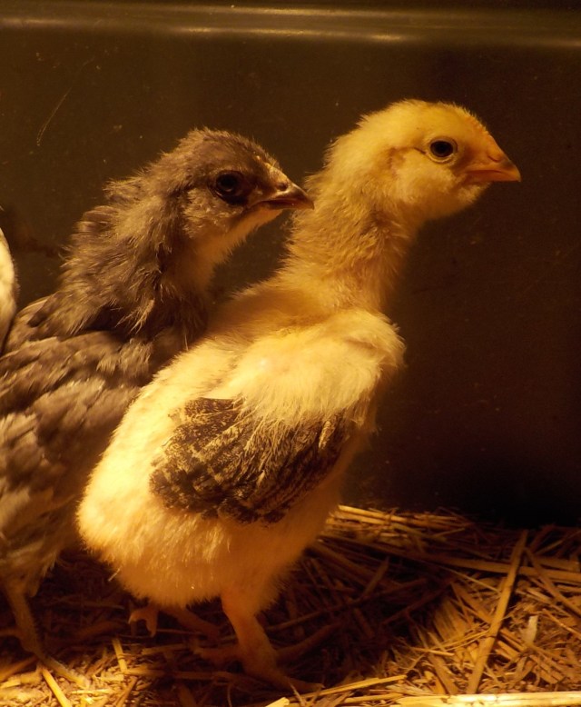Three toed chicks and five toed chicks, in some cases combs are starting.. I have my bets down on six hens and the rest as roo’s but that’s just a guess based on wing tips as day olds and as we all know, that’s is helpful but still a guess.. We will see, I am positive that the big solid black chick is a roo, just the build, the head shape an the comb already coming in screams it to me.