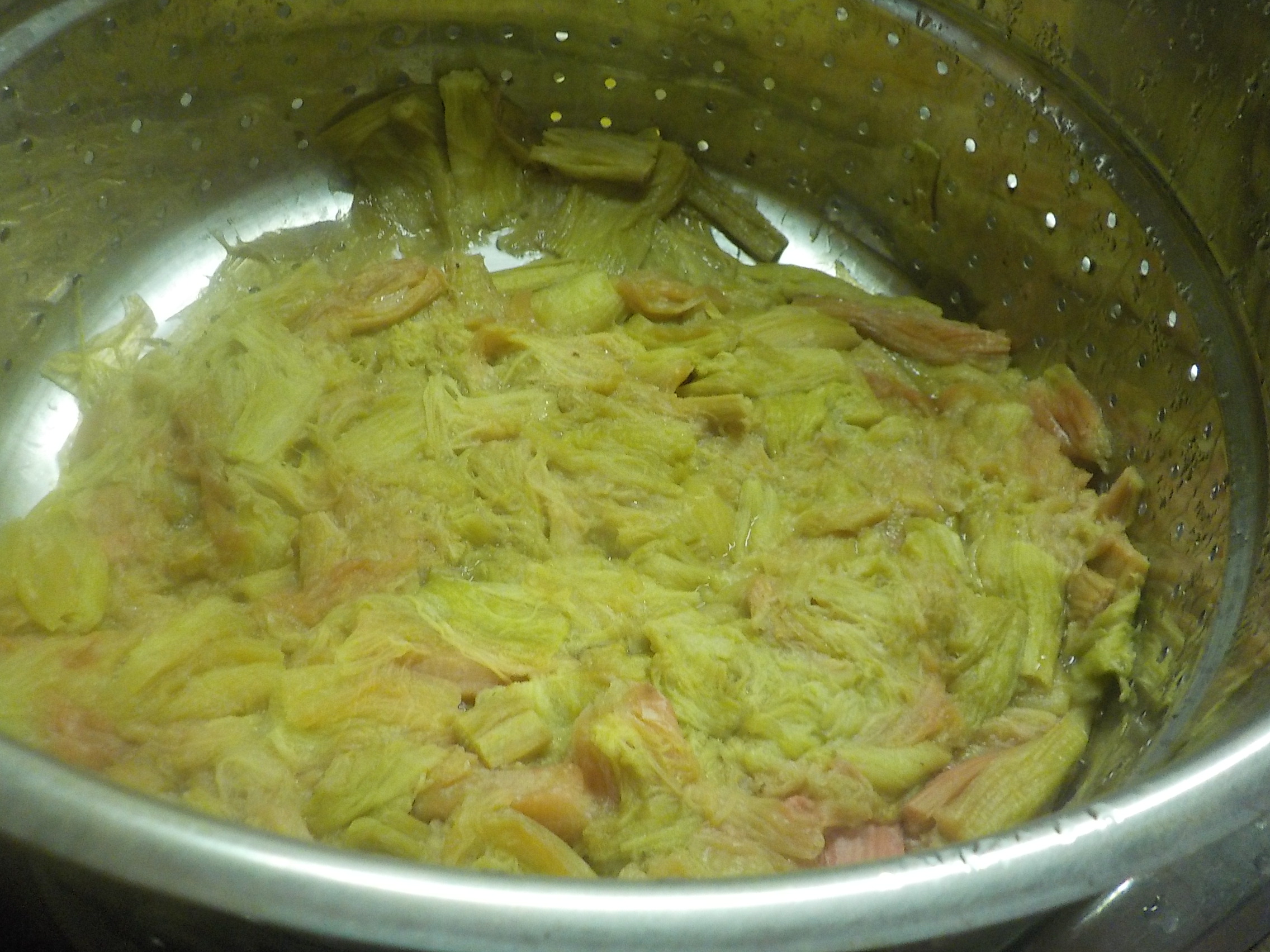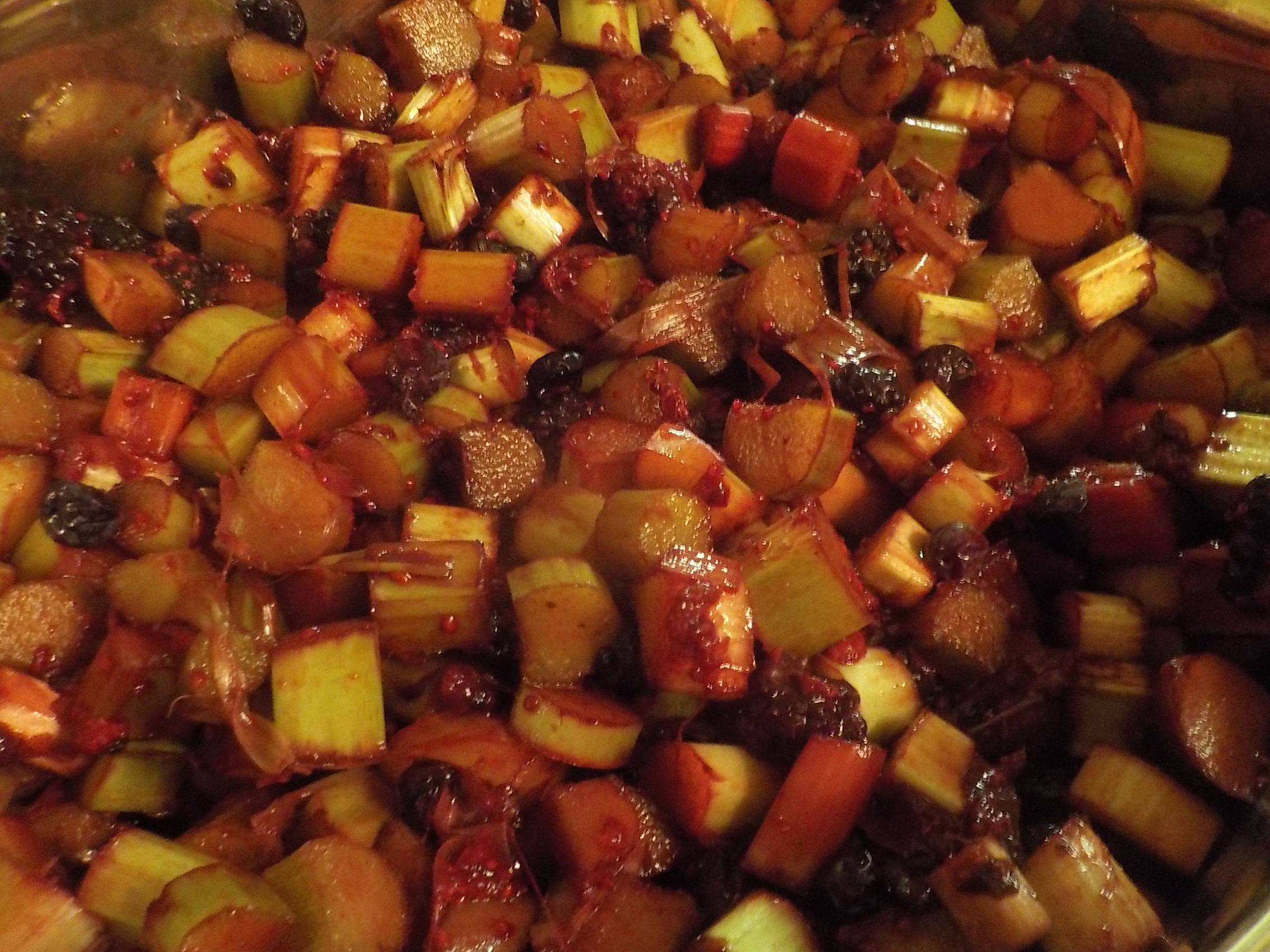 I have to admit that its delightful but I will agree that its not strongly “rhubarb”. I have got it down to pretty much figured out that with this springs rhubarb its a pound to a pint of finished product.