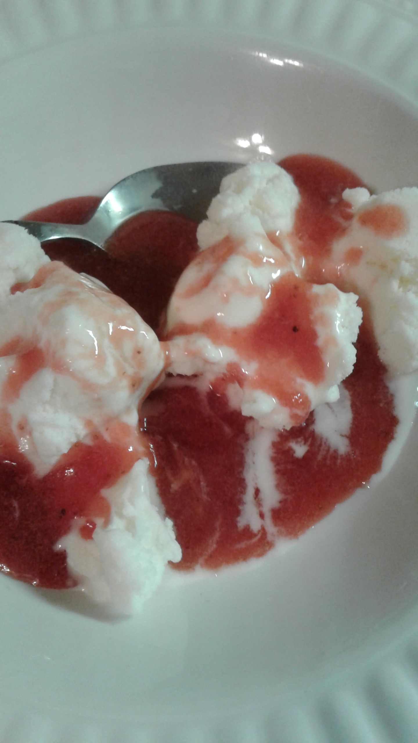 Dear Hubby has the last bit of the hot fresh made jam over his favorite treat icecream, I laughed and said it was just one of the rewards for all his hard garden work! The local u-picks are selling fresh locally grown strawberries at 4 dollars a pound, they are no longer selling by the basket or bucket but by weight at the end of your picking. They are selling 3 liter pre-picked strawberries at 12 to 14 a basket at the local farmer stands.