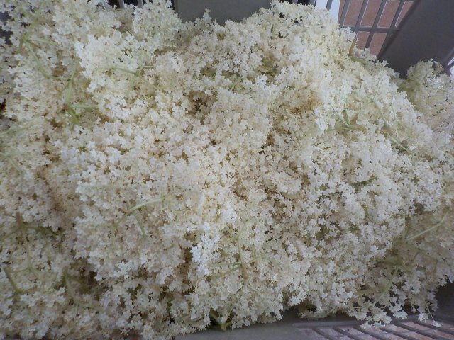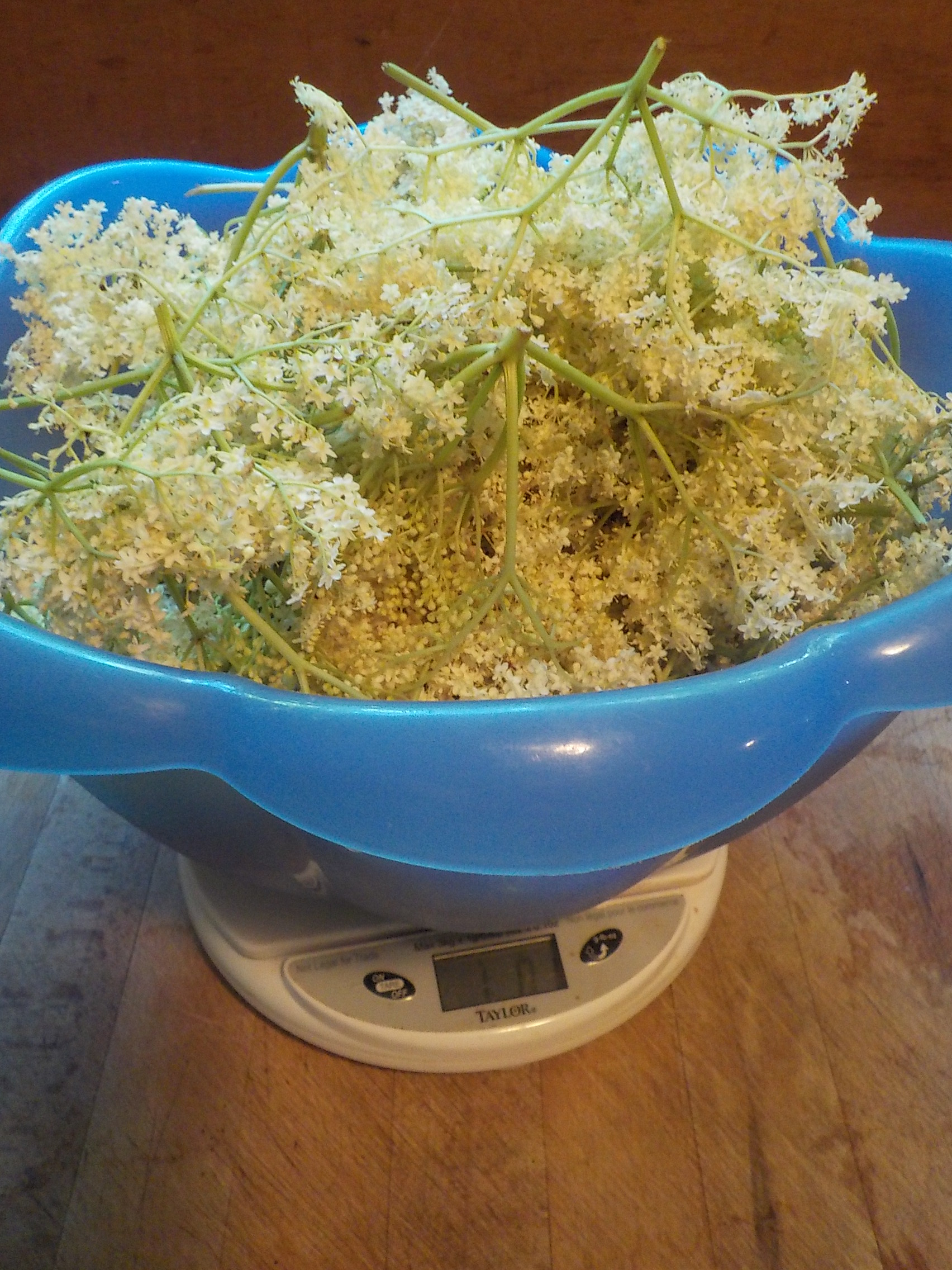 We only take off 1/3rd of the flowers per bush so that we will have lots of elderberry’s coming later this year, I find that taking off the 1/3rd of the flowers (I am the only one that harvested from these bushes) means bigger elderberries on the ones that remain, I also make sure that the one remain do not overwhelm any one branch, reducing the chance of breakage from berry weight.