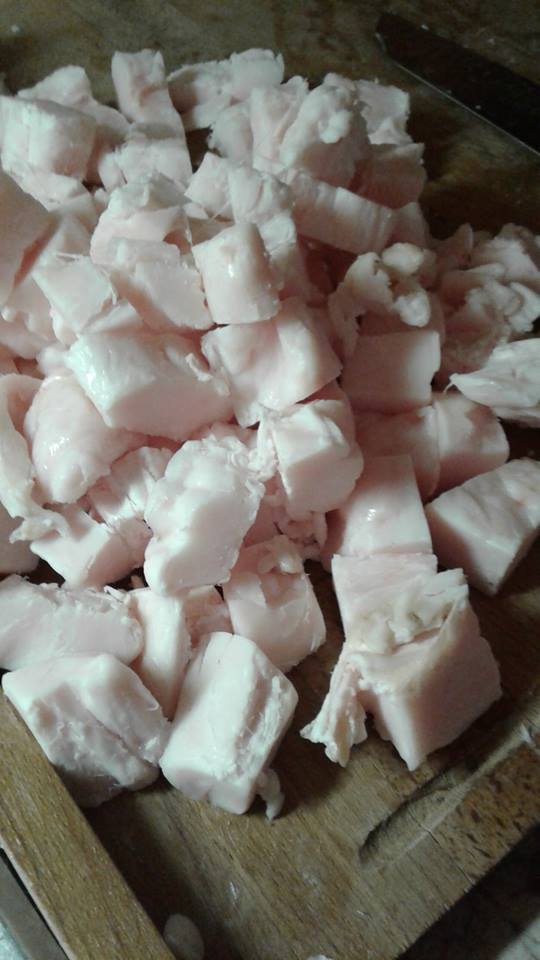 This fat was very fresh and the smell was excellent, you can tell by the color and texture of this lard that the pigs were not feed soy and that they had access to pasture.