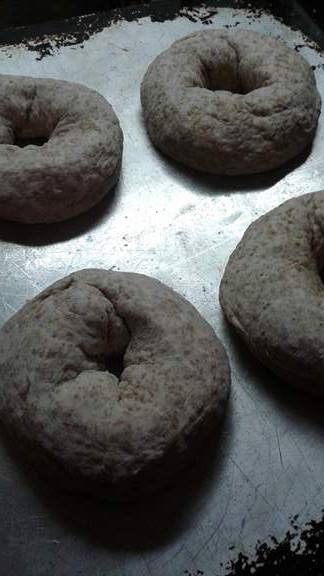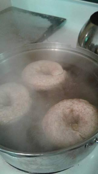 I was making a batch of Honey Whole Wheat Bread on Monday and thought.. why not make half the batch into a loaf of bread and the second loaf in size into a nice batch of bagels.