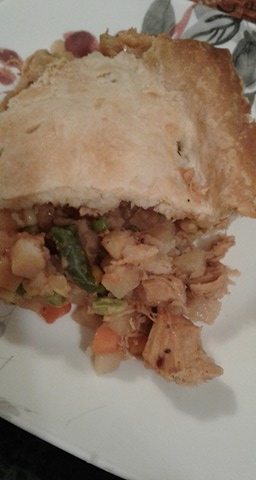 I grabbed a pint jar of home canned Rabbit Tenderloin and used the juice for in the gravy and chunked up the amazing rabbit meat and then hit the freezer.. diced potato’s and a veggie mix along with two cups of gravy, onion powder and Montreal steak spice and I am game (as it turned out, I needed more gravy) o well.. everyone loved it anyway..