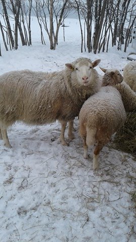 Winter still has us firmly in her grasp, more snow daily for the past three days and under a freezing rain warning and or more snow today as well.  Maude sheep always looks huge compared to my hair sheep girls.. part of that is breed difference and part of that is wool is fluffy vs the much sleeker hair sheep’s filled in winter coats.