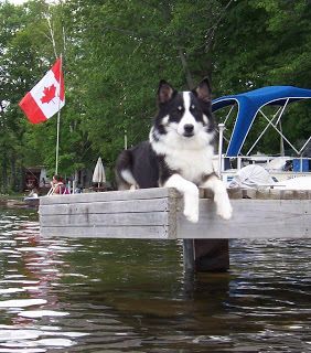 • O yes.. he was one of those happy, love to please you dogs.. he flew though his puppy training class and got his basic with ease, I never went further and I swear he was one of those that felt effortless for the next 13 year, once he learned it, he knew it.. he was to soft for sheep, but to much of a “macho” boy for therapy work, not with the people, total suck, but with other male dogs, he thought he was “the guy” I took him for cart training once and he loved it.. he was so proud when he was in harness and helping pack or pull anything on the farm, or in the bush trails.. he loves his creeks, rivers and lakes so much.. he was sure we built the little pond on the farm just for him..