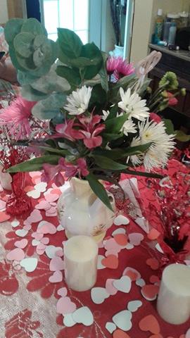 As I sit here with my red table with my truly beautiful flowers gracing it, with flowering Violets in the window and we are starting a dino plant that was a gift for Valentines day and works perfectly for the Chinese New Year as it is a symbol for new life.