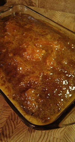 Mix 1 cup of Orange Marmalade with half a cup of orange consecrate and half a cup of sugar, mix together, it will create a thin but very tasty glaze that will put on the cake while its still hot. Take cake out of oven, allow to cool a min or two.. take a wooden stick or large metal fork and gently poke holes about half way down into the cake over it, then pour and smooth the glaze over the still hot cake, part will melt down the holes and some will stay on top and become more solid as it gets cool.