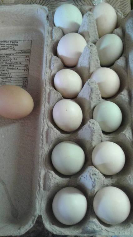 I have a number of little pullets that have started laying most of them are laying the off cream eggs that show their Salmon Faverolle or Icelandic background but two appear to have a bit of americain in them as they are laying light green eggs.