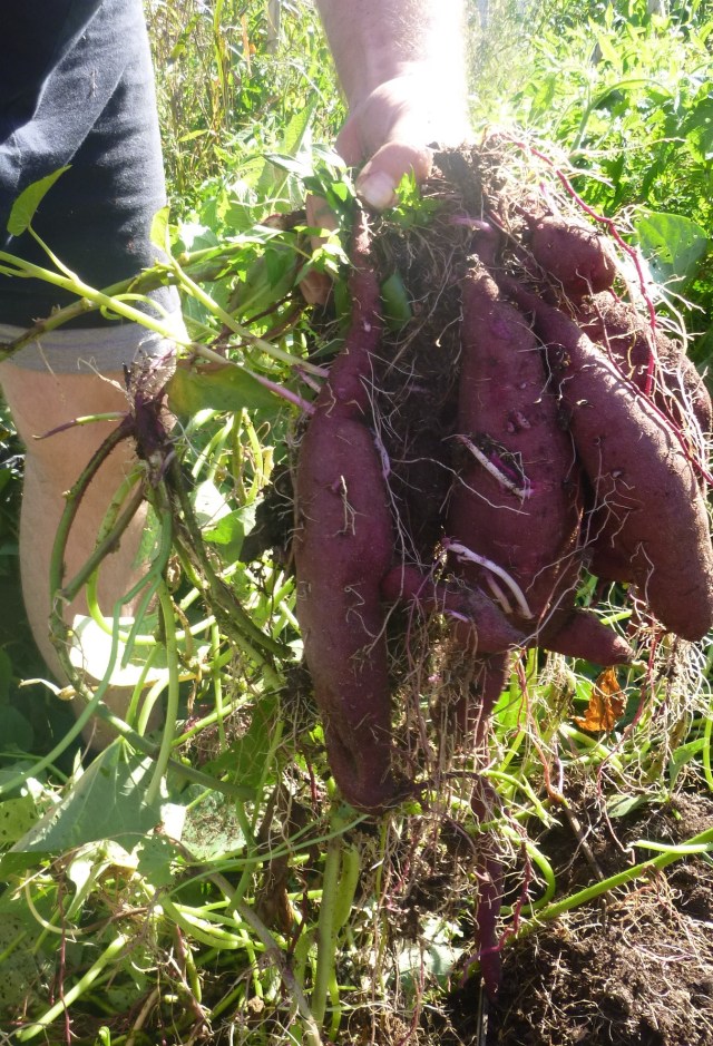 Normally my man is my power horse on the farm and he loves to work in the gardens, he is the big double digger, the hauler and pen cleaner, I am more the turner, weeded, planner, water person and the inter-planter and of course the processor.