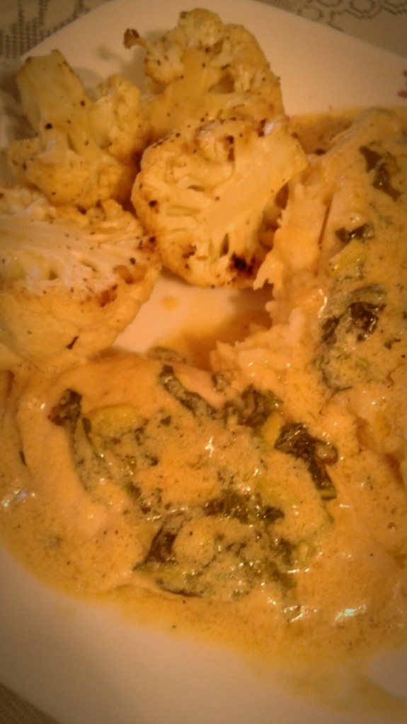 It can be used to make a lovely Cream Sauce that goes very well with Chicken or Salmon. In this case I make it to go over pouched chicken breast, Mashed Potato’s and Roasted Veggies. It was a solid 2 thumbs up from Dear Hubby which is not easy to get LOL