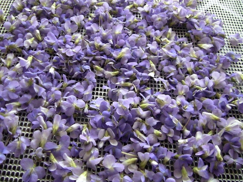 You can make Wild Violet Vinager (as you can with any other safe flower) by filling a jar half full of clean picked flowers and then covering with a light white vinager (rice, white wine or white), and flip up and down once a day for three days, strain out the flowers and bottle, will keep for a full year and can be used as a flavored vinager for dressings/salads etc.